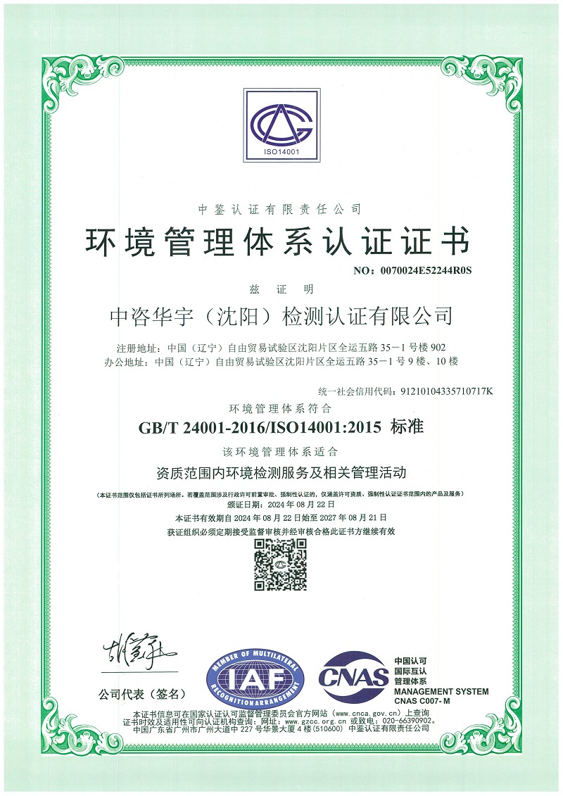 遼寧中咨華宇環保技術有限公司成立于2011年1月,實繳資本金3000萬人民幣,自有辦公用房5000平方米??毓晒炯胺种C構:中咨華宇(沈陽)檢測認證有限公司、遼寧中碳鑫創碳資產管理有限公司、湖南盛大環保科技有限公司遼寧中咨華宇環保技術有限公司湖南分公司、黑龍江分公司、內蒙古分公司、海南中安科分公司等。